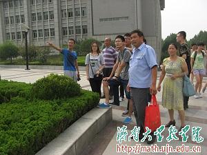 学生代表根据计划线路带领新生家长们参观了学校的教学楼、图书馆、七教办公楼、体育场地等学校标志建筑,并详细介绍学校各个教学楼分布情况。参观过程中,新生家长们说明了自己对学校环境的看法,不断称赞学校优雅的环境和利于学习的教学楼。在家长参观校园期间,家长们不断询问学生代表新生以后的上课情况和应该怎样正确的适应大学生活等等,面对家长们的各种困惑,学生代表耐心为他们解答疑惑。不少家长反映上大学是孩子第一次离开家,对于生活自理方面还有不少问题,学生代表们的安慰很快就让家长们放宽了心。